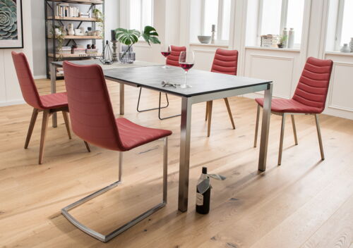 Varianten: Mit Armlehnen, als Schwingsessel, Wildeiche massiv, Eiche Bianco, Barrique Eiche, Gestell fest oder 180° drehbar mit Rückholfunktion